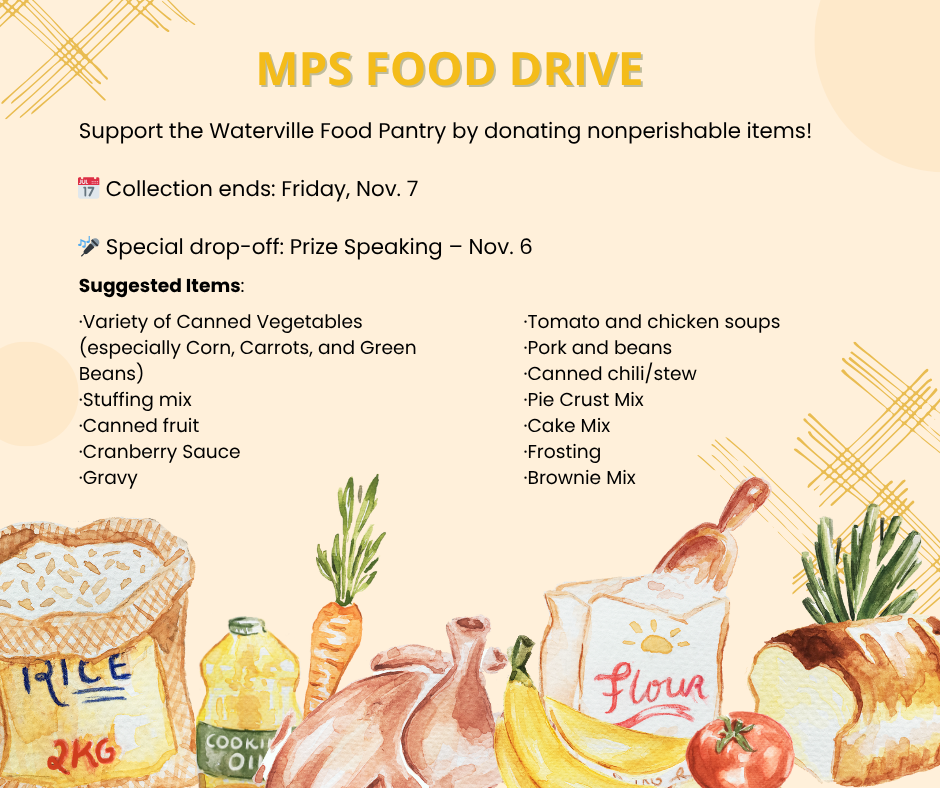 In the spirit of Thanksgiving, let’s come together to support families in need by donating nonperishable food items to Waterville Food Pantry. Every contribution helps spread kindness and holiday cheer!